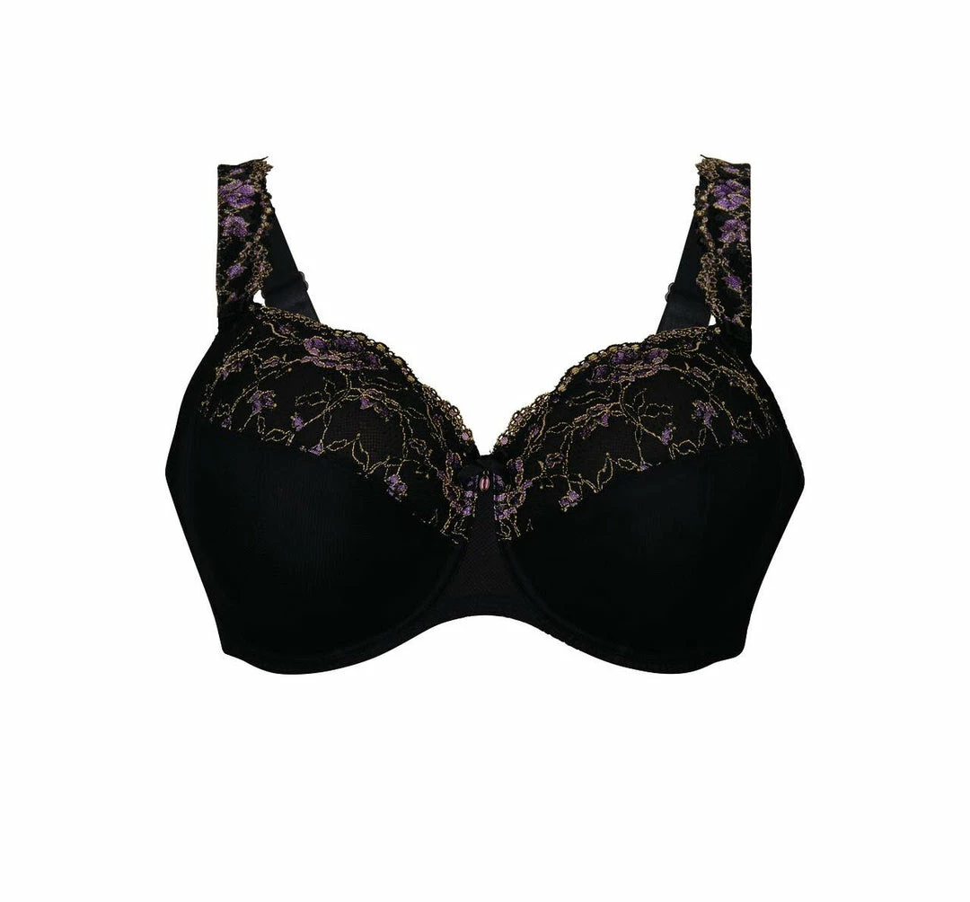 Opulent lace for busty women! The special Big Cup cut from the Colette series guarantees a perfect fit up to a J cup, while the crescent inserts on the sides helps shape and support the breast. The shoulder straps with tricolour lace detail peeking out from tops and dresses are definite eye-catchers. These straps are cut wider for bigger cup sizes to prevent uncomfortable pinching in on the shoulders.