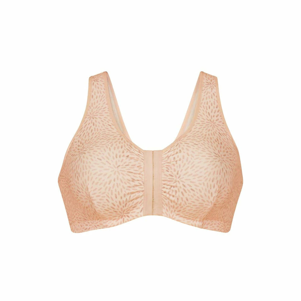 - The front fastener with hook closure combines ease of function with modern aesthetics