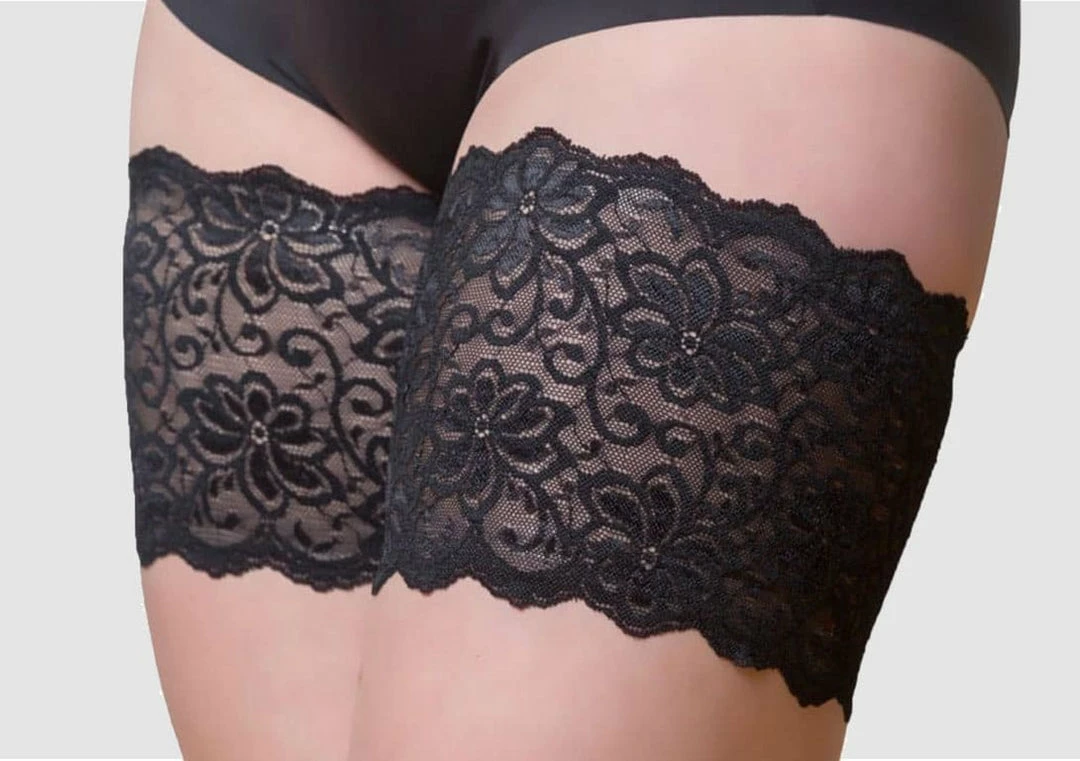 Bandelettes® Thigh Bands resemble sexy thigh high tights without the inconvenient slipping. They are an attractive anti-chafing solution that prevents irritation and scarring from painful skin to skin rubbing. If you love your thighs, your thighs will love wearing Bandelettes!