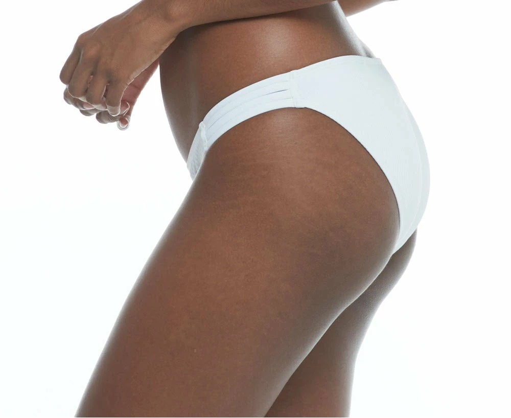 Made with soft ribbed fabric for a visual touch, the Ibiza Flirty Surf Rider swim bottom is a Body Glove staple with the perfect amount of flair. Its multi-strap sides add a touch of eye-catching detail, perfectly complementing its hip-hugging low-rise fit and fuller coverage around back.