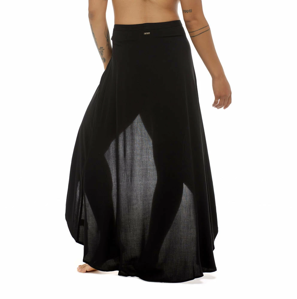 Lena into good vibes and sublime style with Lena, a high-low wrap skirt in a basic black. Its sloping tulip hem is the definition of femininity and flow, tied together at the waist with a perfectly dainty bow. Whether paired with your favorite bikini top or a summery blouse, the Lena will have you looking like a total vision.