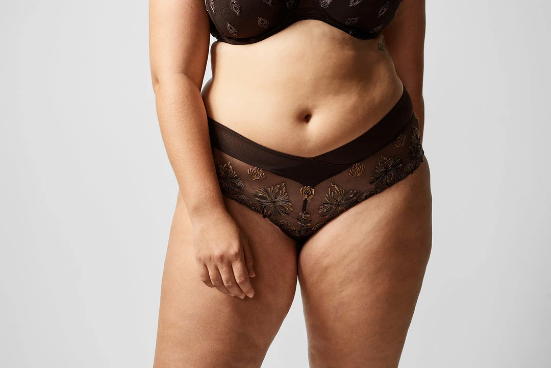 Made of sheer, embroidered tulle, the low-rise Champs Elysees Lace Hipster is modern and sexy. Cheeky back coverage and a V-shaped waistband provides a seductive twist to this everyday style.