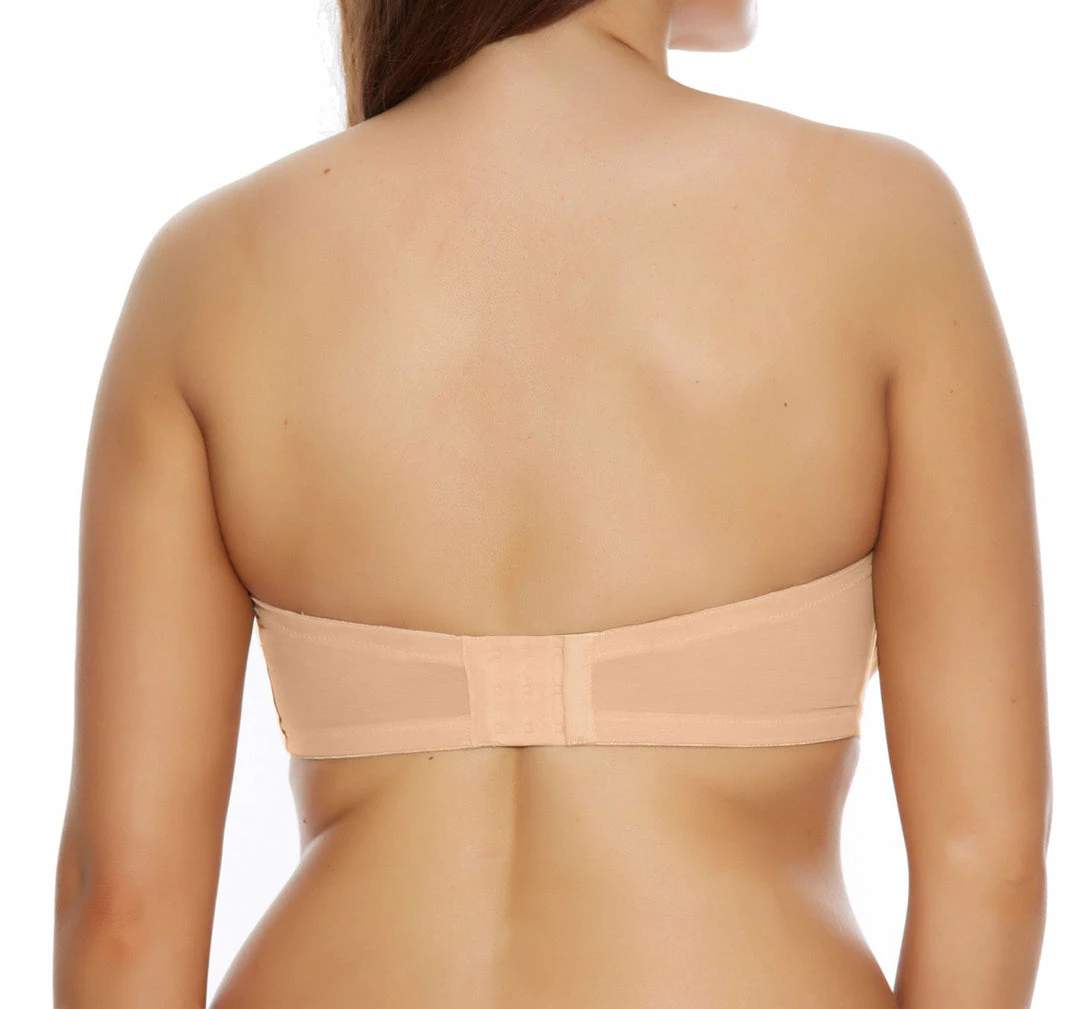 - Seamless, with wide side panel to hold breasts firmly in place.