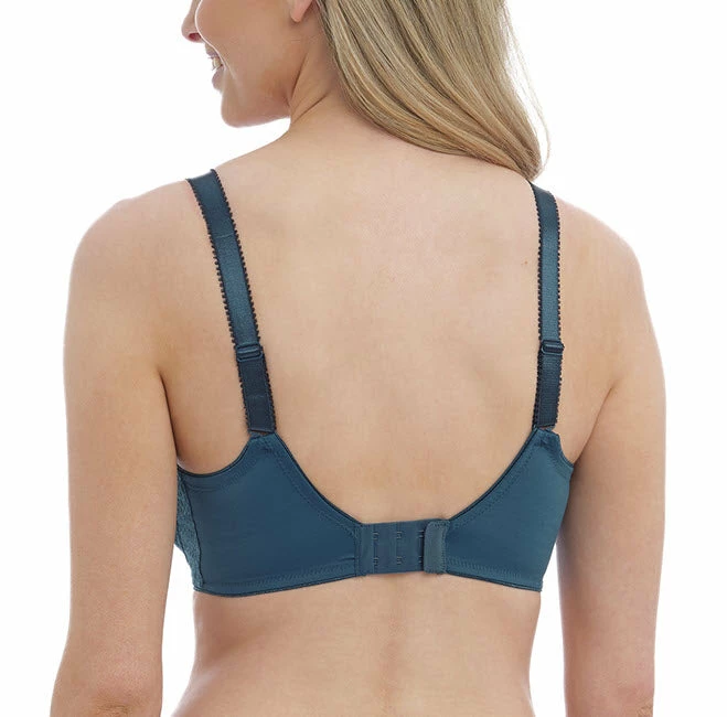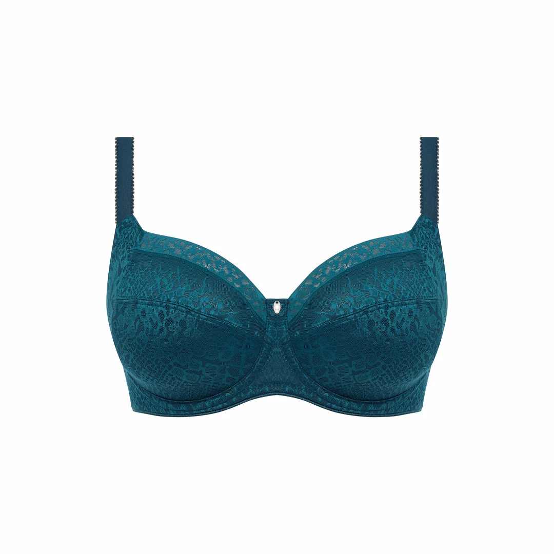 Adored for its support and comfort, the Envisage Full Cup Side Support Bra returns in a rich Deep Ocean color. Crafted from stretch Jacquard lace that features a subtle animal print and iridescent shimmer for a luxurious look, while three piece cups create great uplift and forward projection for a flattering finish.