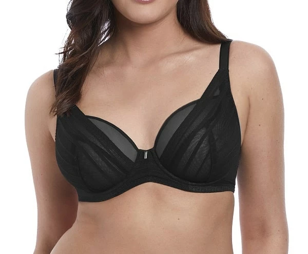 Contemporary and chic stripe mesh design makes for a great dark colored bra. The shape offers all of the uplifts you crave for a smooth silhouette. The fabric is rigid and supportive yet also lightweight and airy.