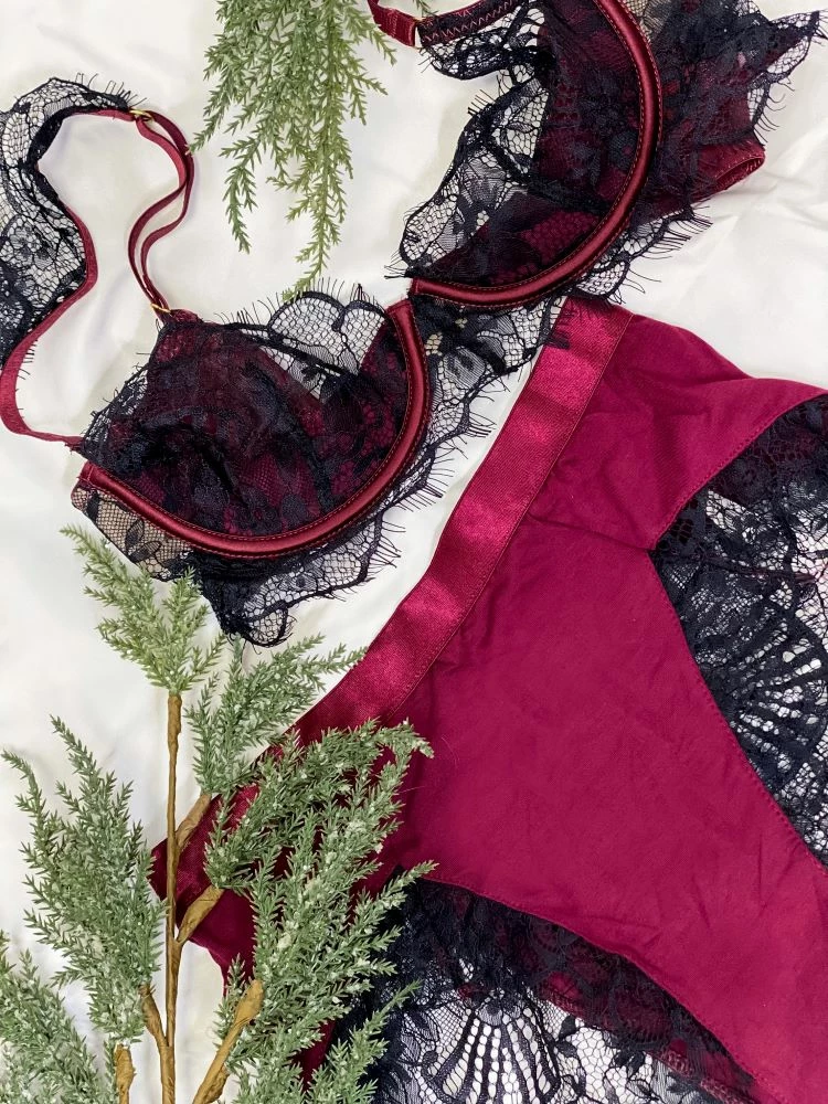 Romantic yet racy, the Nicole Collection was made to entice. Designed with an underwire cup with exquisite floral scalloped lace that wraps over the cups, wings and legline that makes a strong statement.