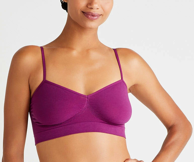 This comfortable temperature control bralette features a v-neckline and gentle support knit right into the fabric.