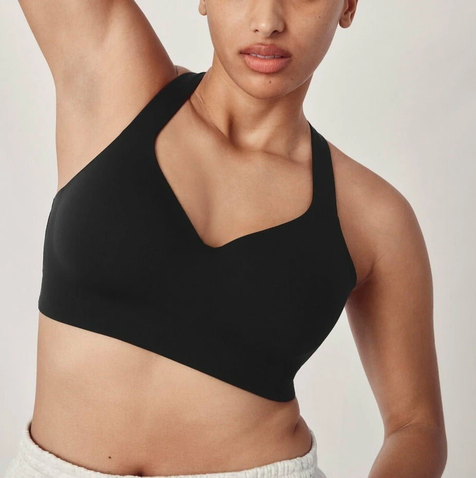 - Wireless sports bra with breathable cups and high impact support