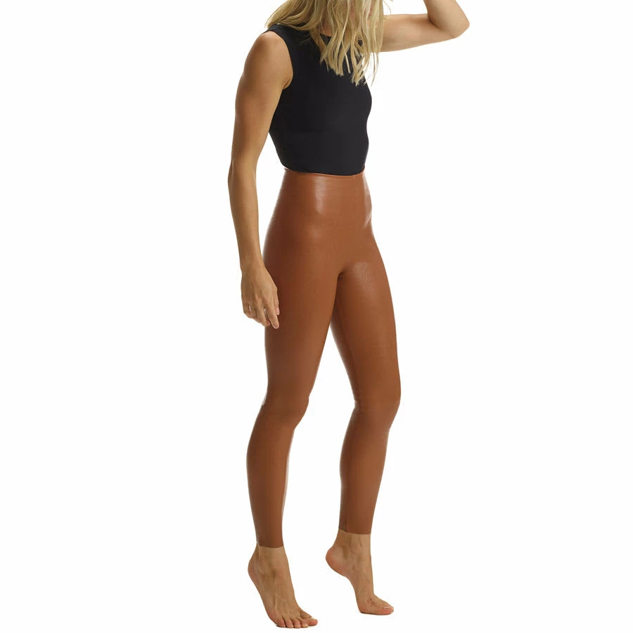 Faux leather leggings featuring commando’s signature internal waistband & firming, smoothing fabric that doesn’t bag or sag. These faux leather leggings are seriously smoothing and provide all-day comfort you can style from day to night.