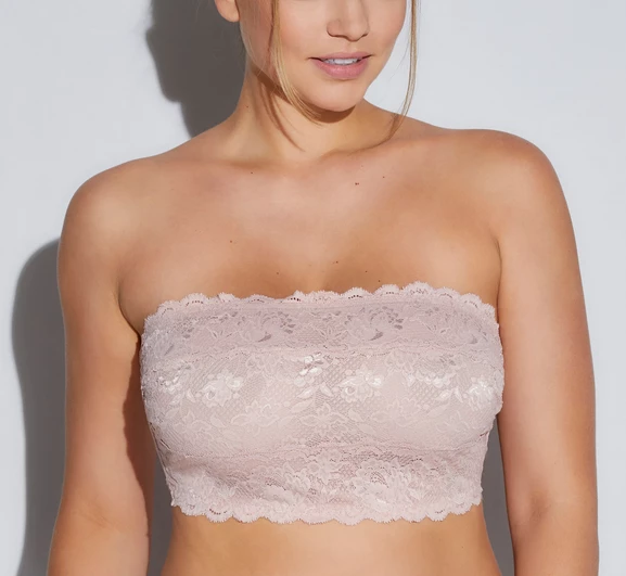 - Wireless lace bandeau bra designed for fuller busts with smaller bands.