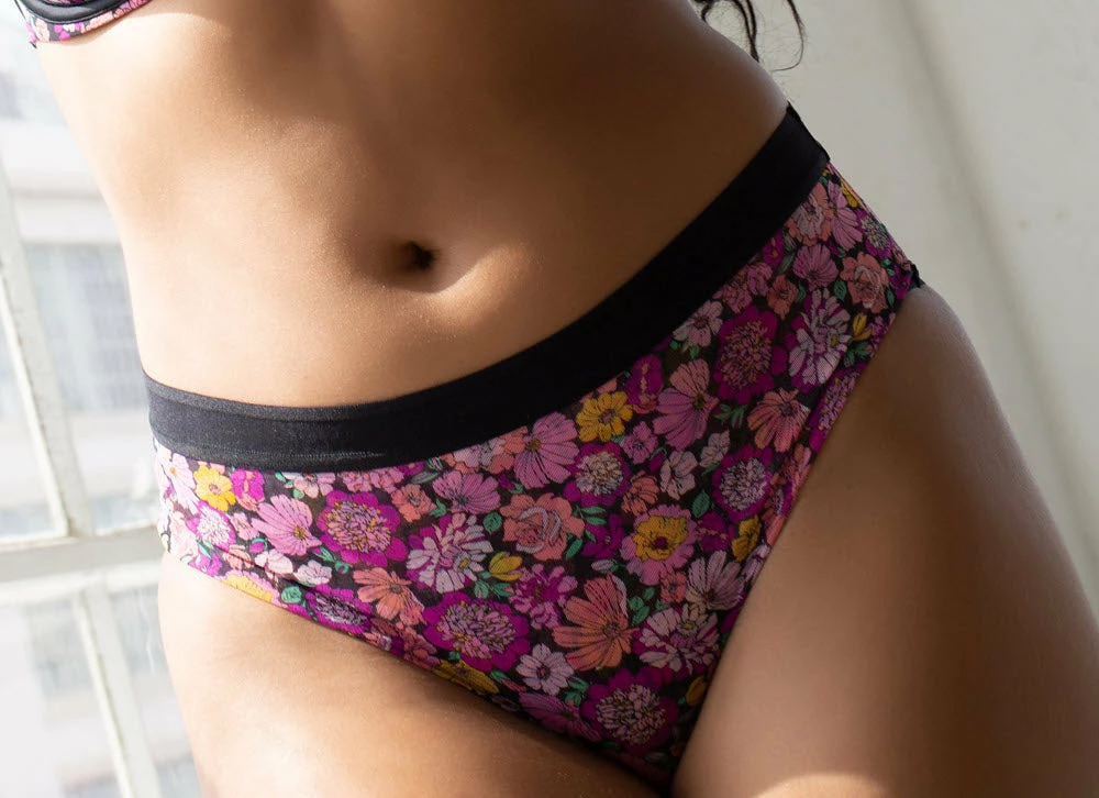 Curvy Couture Sheer Mesh Retro Roses High Cut Hipster Panty 1313