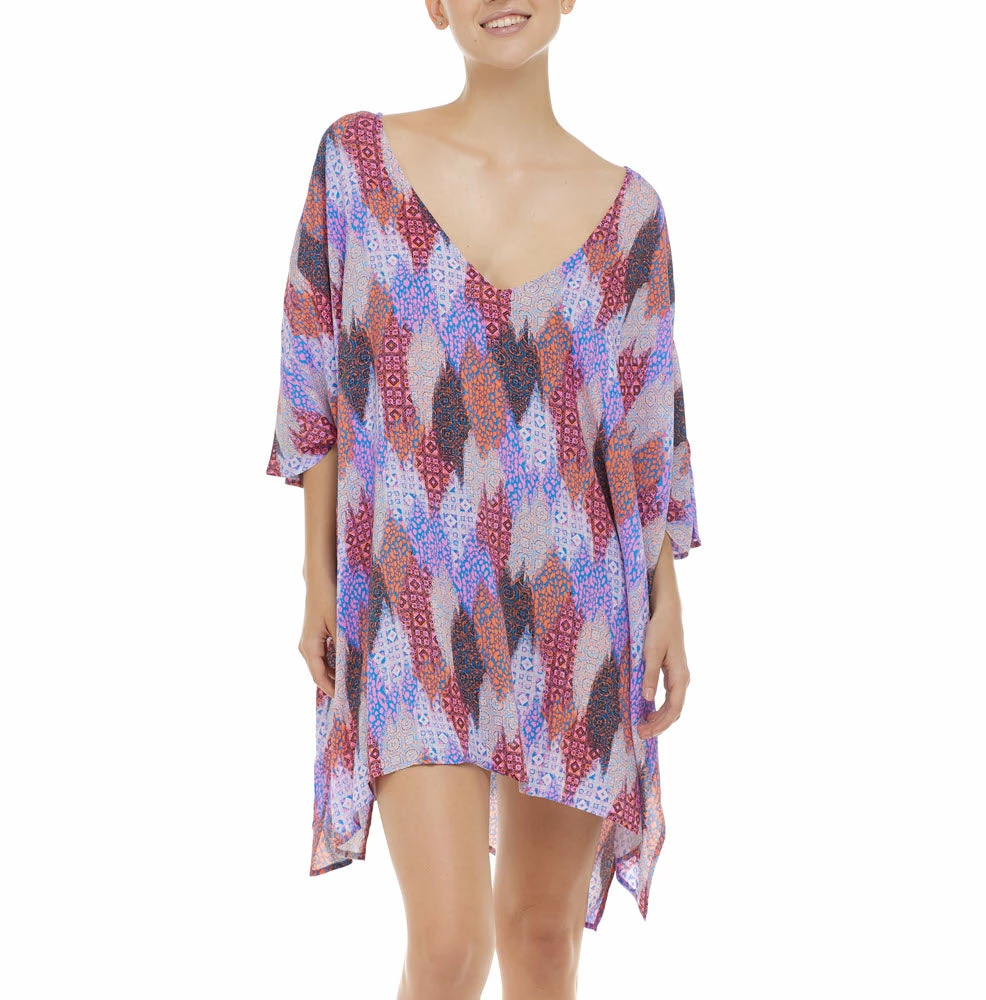 Like a cocktail umbrella leaning against the rim of a daiquiri, our Maeva kaftan is a touch of fun for lazy days under the sun. Its breathable woven rayon fabric is perfect for beating the heat, alongside open sides and a thigh-grazing hem that will keep