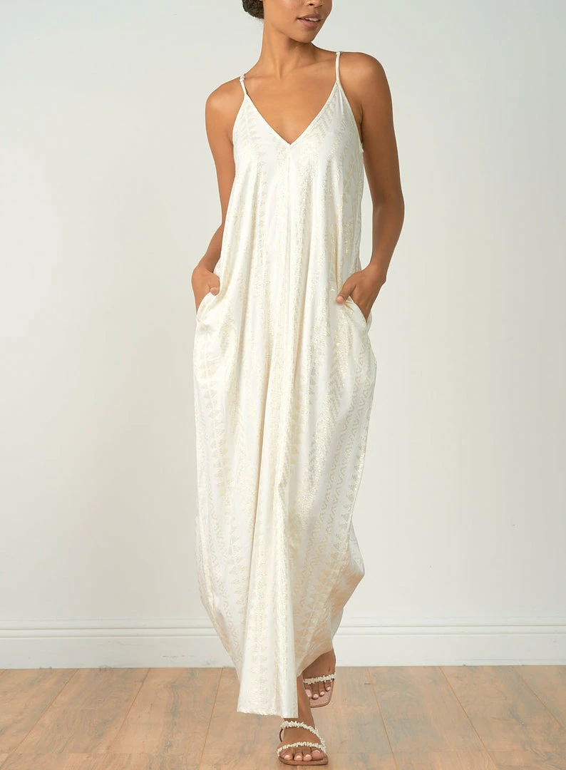 A spring essential that goes with literally anything. Detailed with functional pockets, spaghetti straps, and a relaxed, comfy silhouette.