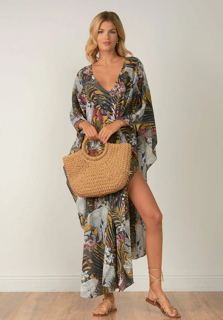 Feel and look fabulous in Elan’s printed Kaftan! Pair this kaftan with any bathing suit and you will be a showstopper at the beach!