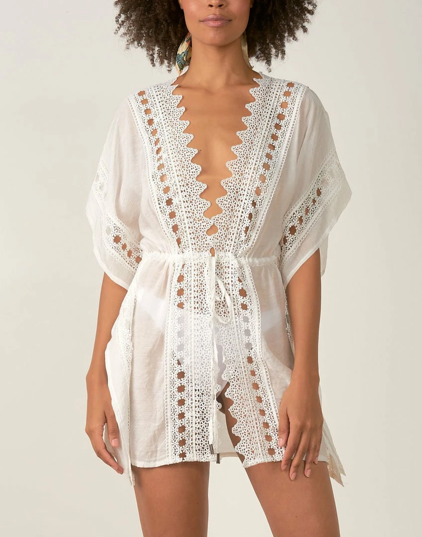 Step out by the pool or hang by the beach in this gorgeous cover up by Elan! The crochet detail is to die for!