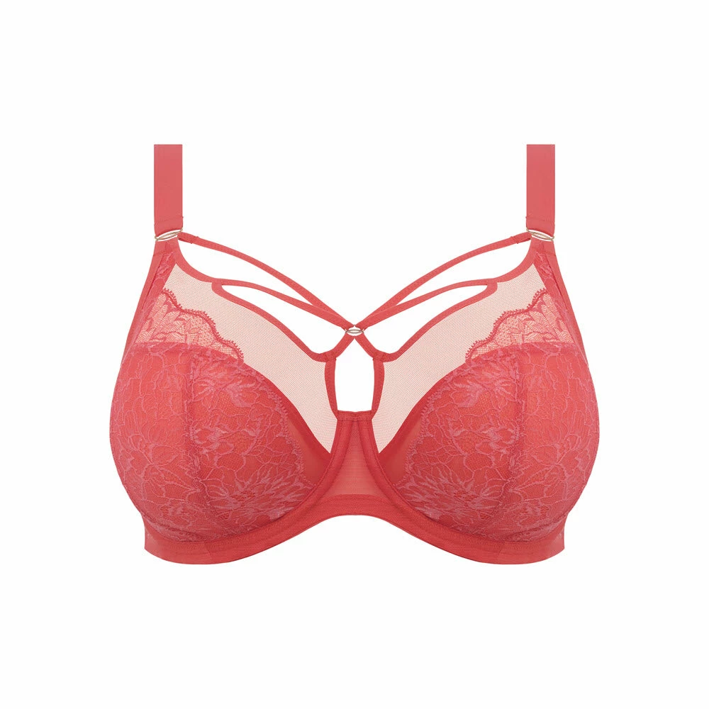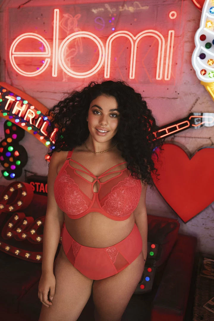 Brianna Plunge Bra in a bold shade of Cayenne, showcasing sectioned cups to offer a low plunging frame, whilst unlined tulle cups combine with gorgeous lace and signature strap detailing to complete the look.