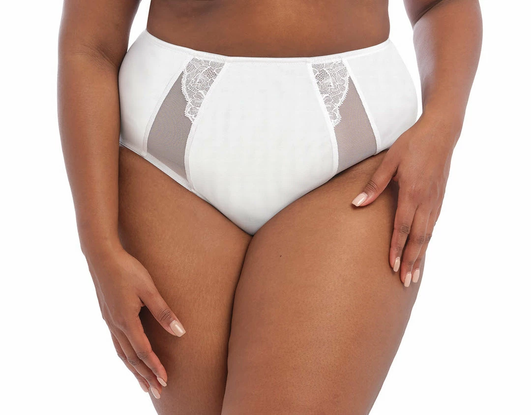 Full Brief in White, designed with sheer tulle sides which are accentuated with a captivating stretch lace overlay, whilst offering full coverage to make the perfect everyday wear.