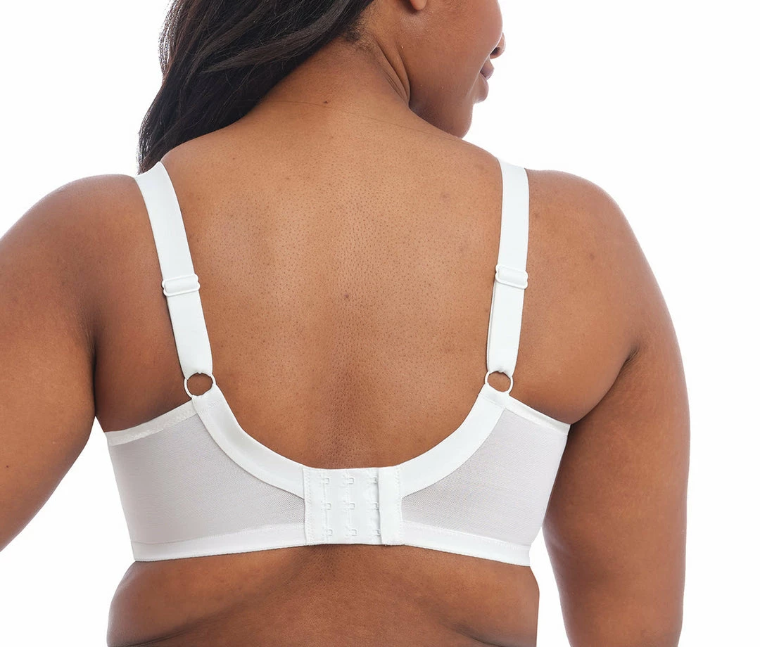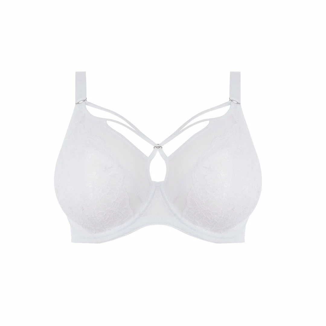 Brianna Plunge Bra in classic White, showcasing sectioned cups to offer a low plunging frame, whilst unlined tulle cups combine with gorgeous lace and signature strap detailing to complete the look.