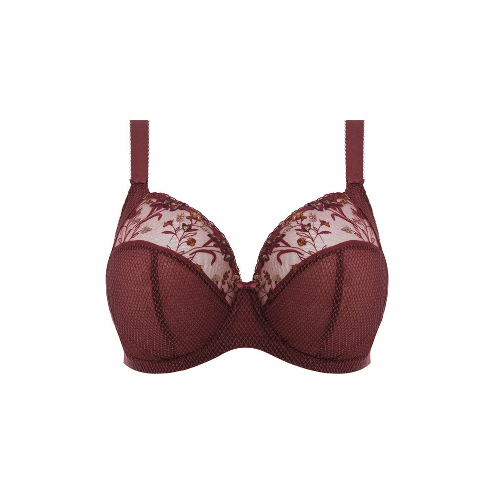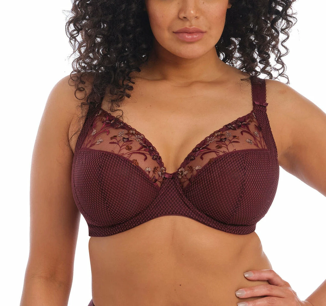 Gracious and youthful, the Charley Plunge Bra in Aubergine exudes nothing but elegance, designed with intertwining embroidery featuring metallic bronze tones and a hint of ochre. The Plunge Bra shape showcases three section cups plus side panels for a perfect fit, whilst an adjustable J-hook allows the straps to be worn in a racerback style.