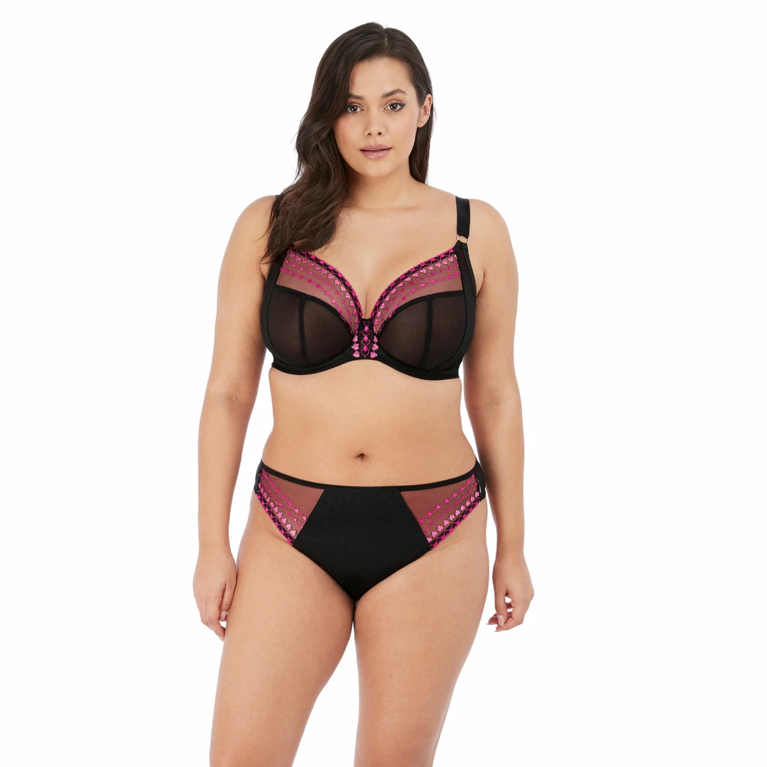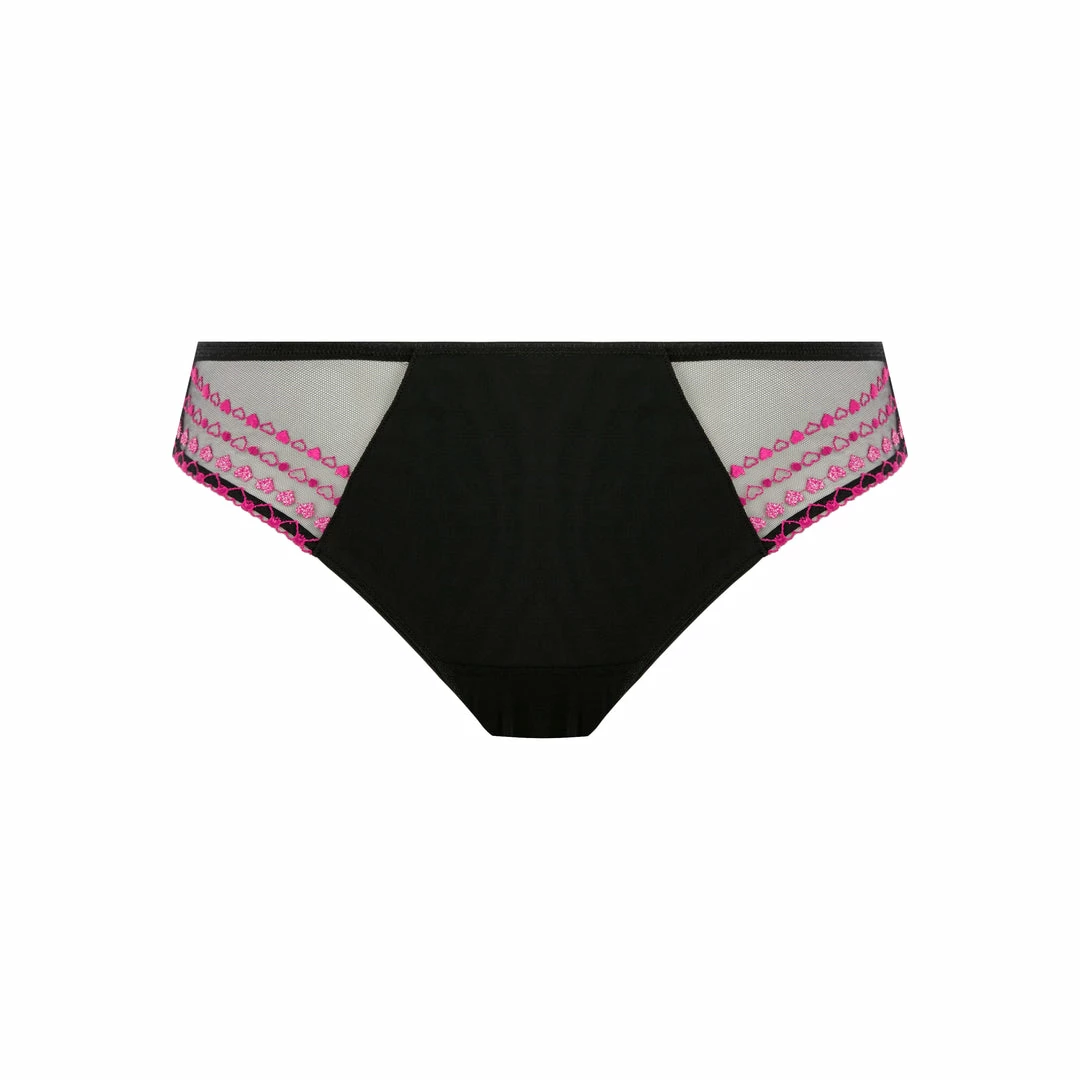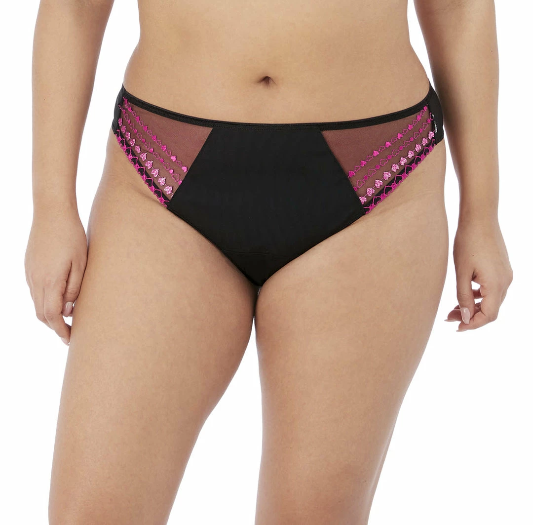 Get cute in the Matilda thong in black and pink kiss! This panty accentuates your curves with stunning beaded lace embroidery and opulent silver ring detailing!