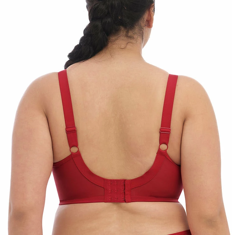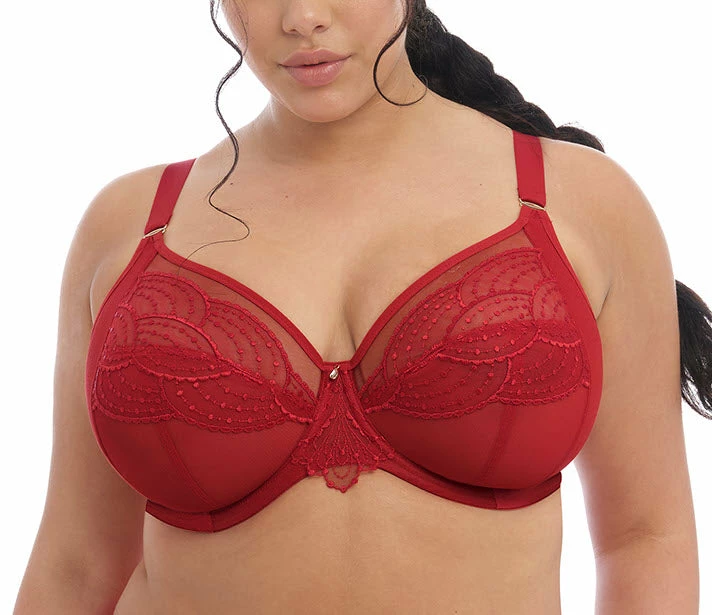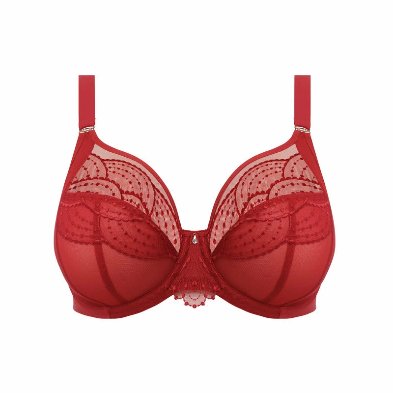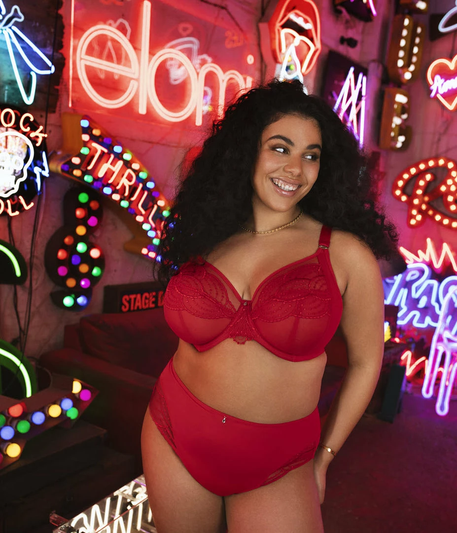 Inspired by draped beading and decadent chandeliers, Elomi’s Priya Plunge Bra in Haute red is the perfect hue to accentuate the designs true beauty. Explore luxury embroidery, under bust lace detailing and a rose gold accent, paired with our signature support and comfort.