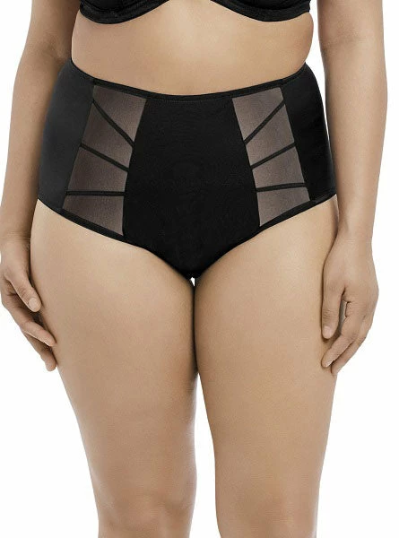 This high waist brief matches Elomi’s Sachi Line. Sheer mesh panels featuring a strappy detailing gives this panty a bold, sexy look!