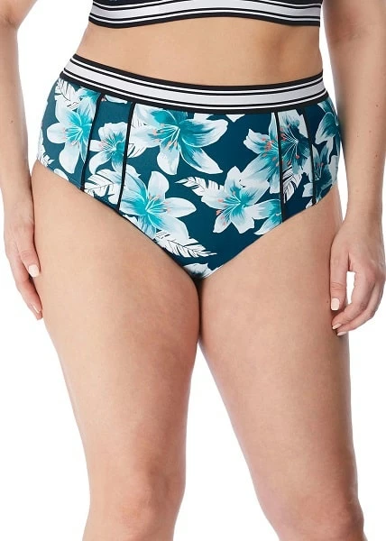 The bikini brief fits up to the waistline with a flattering high cut leg.