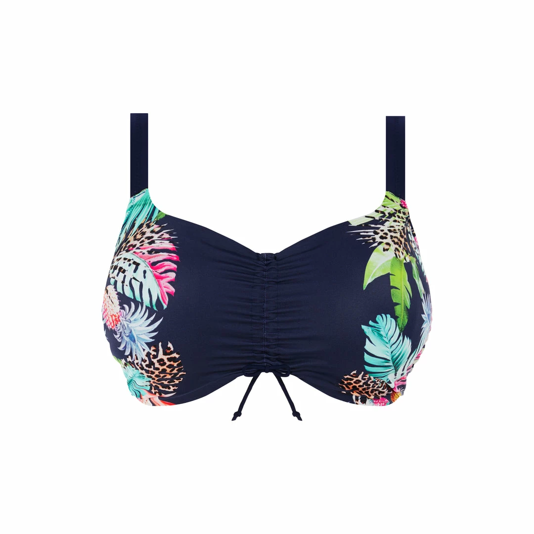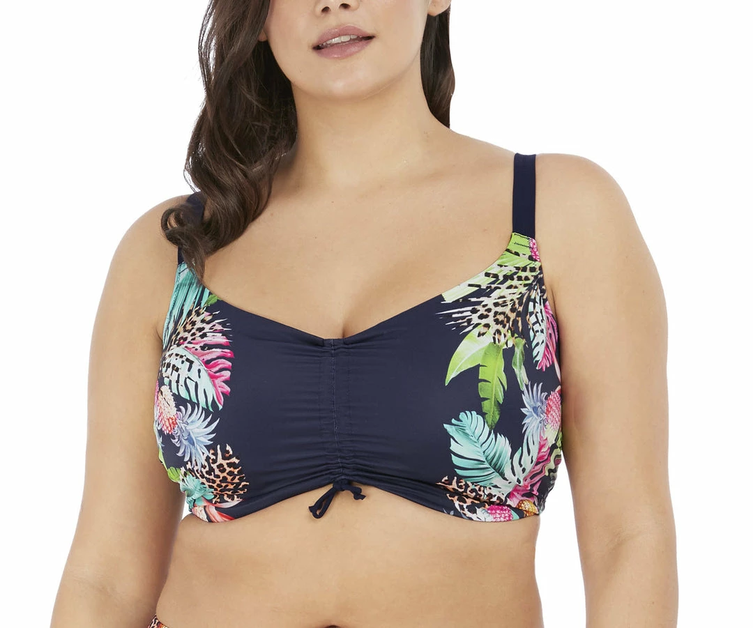 Pineapples, tropical leaves and flashes of leopard print – Piña Colada, just like its name, is a cocktail of playful print elements making it Elomi’s boldest swim collection yet. Popping against a deep Midnight base, the Crop Bikini Top offers great fit through concealed underwires and vertical seams in a balcony style for a rounded and uplifted shape.