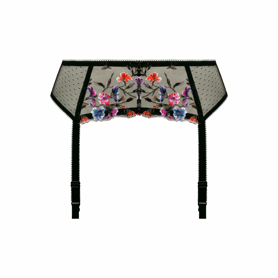 Complete the look and exude confidence in the Suspender of the Aurelia collection, showcasing intricate floral embroidery in a rich selection of hues. Featuring a hook and eye fastening and adjustable suspender straps for ease of wear, finished with a delicate bow and charm at the center front.