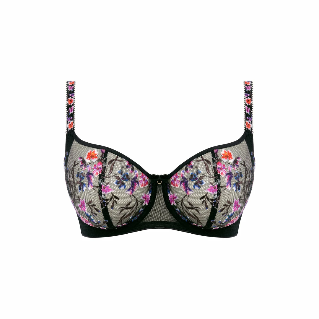 Aurelia’s Balcony Bra in Black features vertical seamed cups to create a flattering shape and uplift without padding, while intricate floral embroidery decorates the cups and straps in a palette of luxurious hues. Wear Aurelia and instantly feel your very best..