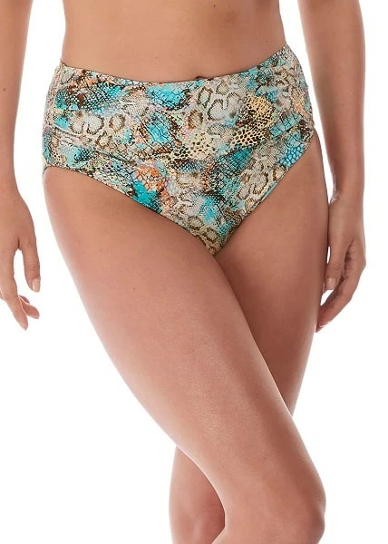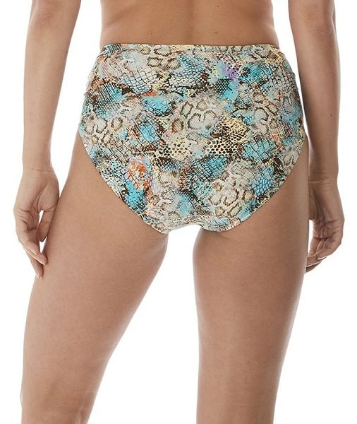 The fabric in this collection is crafted from recycled fabric, this print showcases an on-trend snake print, and the bottom offers great coverage.