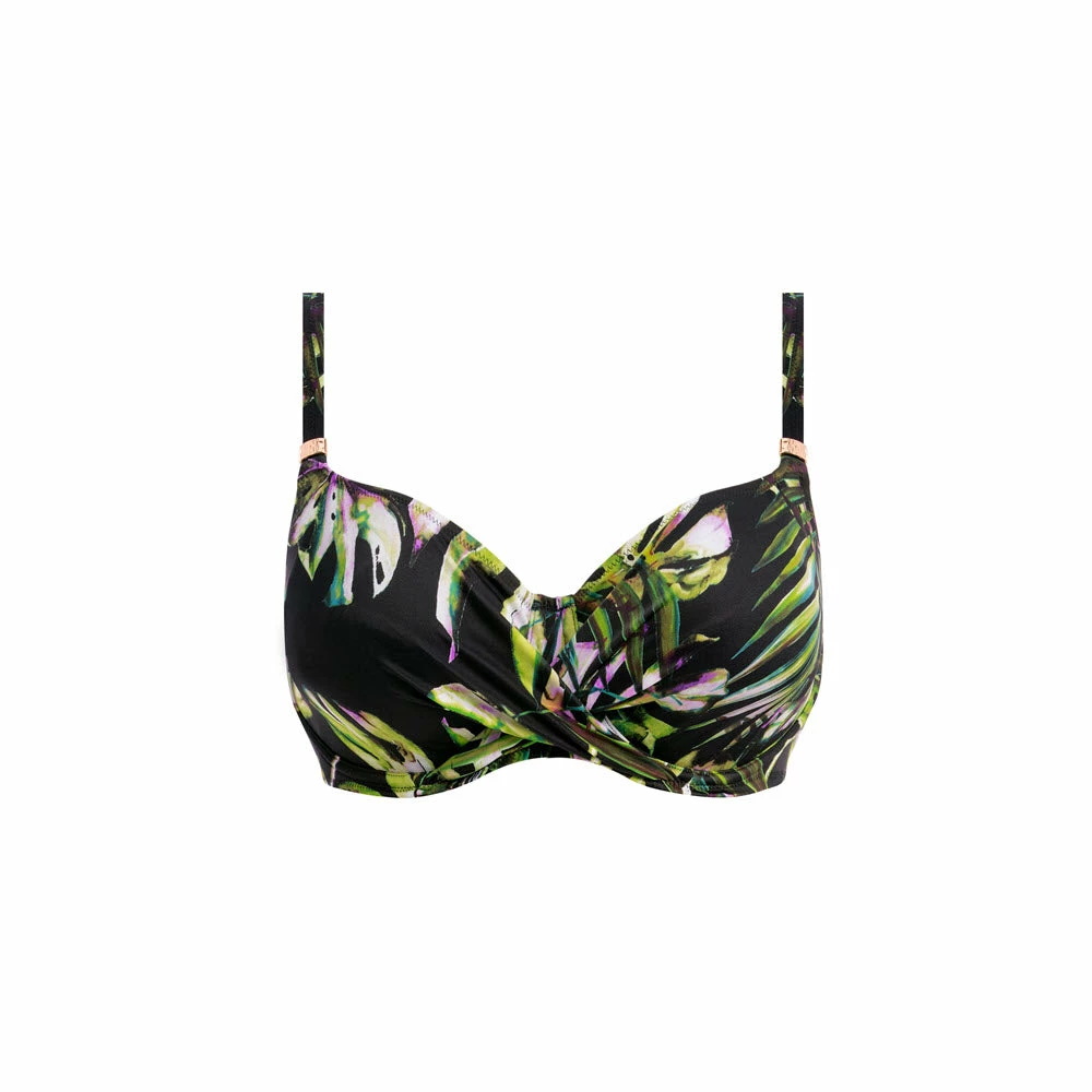 Fantasie’s Palm Valley features an exclusively designed Italian print of leafy tropical palms with purple accents against a black base. The Full Cup Bikini Top offers a comfortable fit with a flattering wrap over front detail and a concealed side sling for forward projection, complete with a rose gold trim.