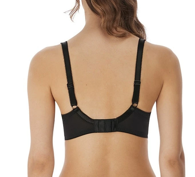 Uncover the Awakening Plunge style, showcasing a contemporary spot design with floral embroidery on the top cup. The pretty style has a low plunge front and a sweet keyhole detail at the center front, complete with fixed fully adjustable straps