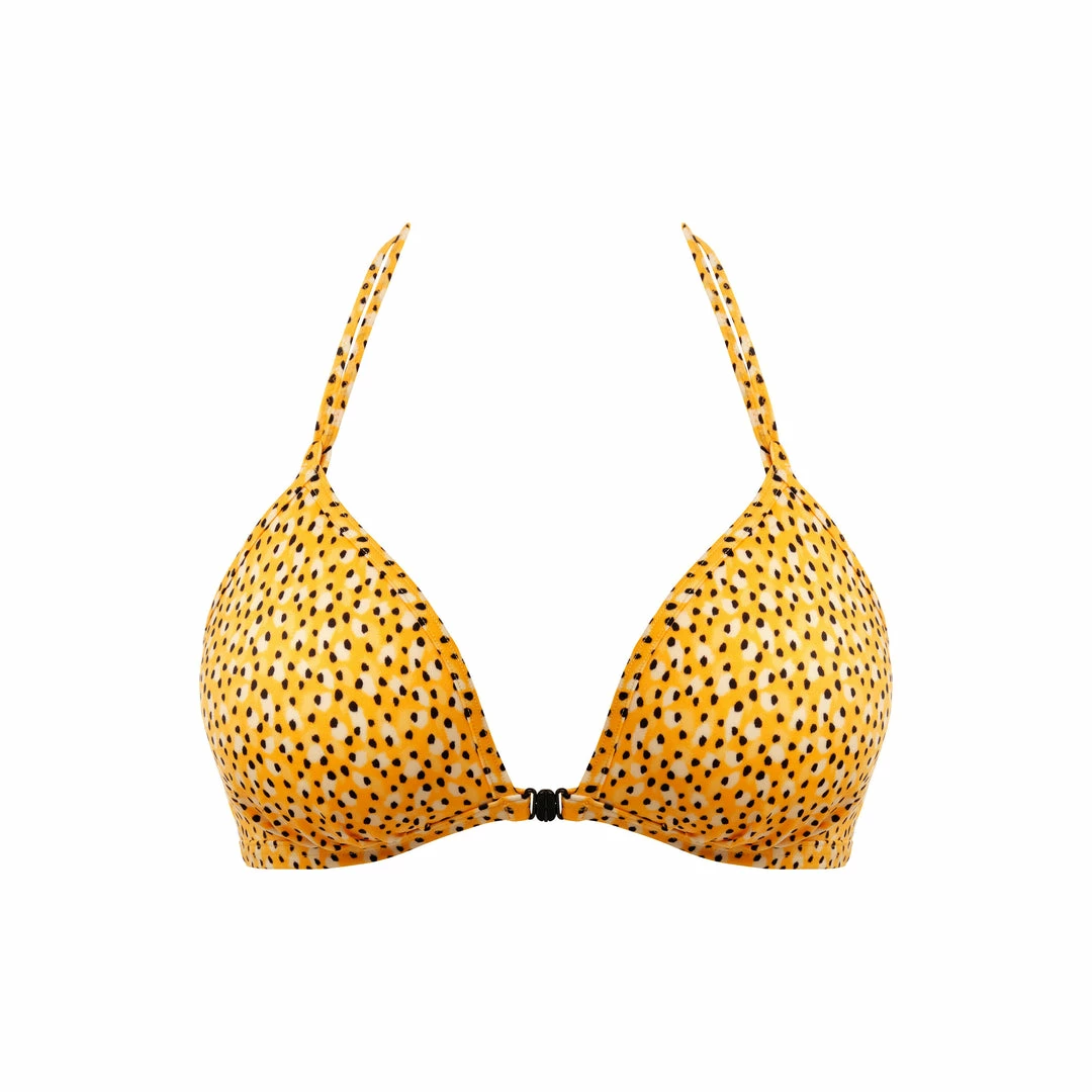 Discover stand out swimwear with our Cala Palma Triangle Bikini Top in Spot, a fabulously designed style boasting a lightly padded two section cup for a rounded shape and support, a centre front fastening for an on-trend lighter look offering less coverage and a flattering gathered outer cup.