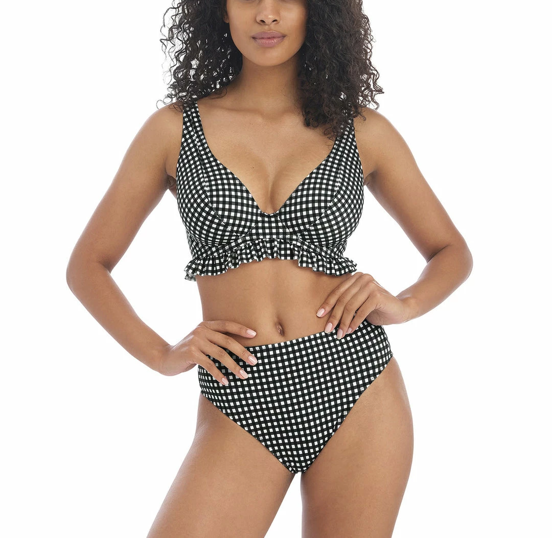 Enjoy timeless style with Freya’s ‘Check In’ High Waist Bikini Brief in Monochrome, showcasing a medium bottom coverage with a flattering fit that sits high on the waist with a scoop leg line.