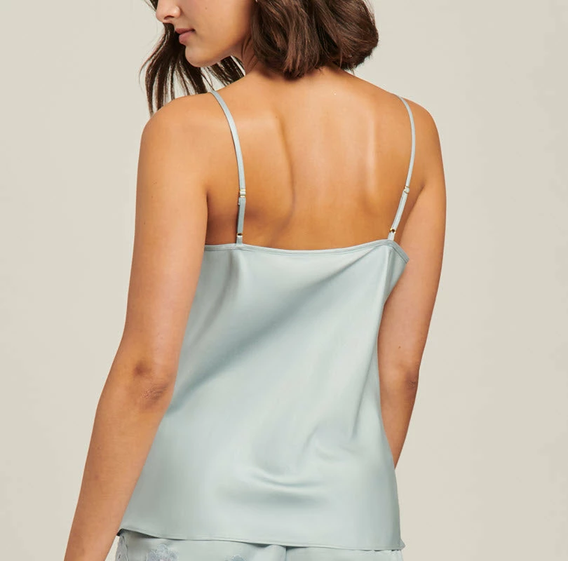 Washable Silk Blend Cami in Pearl Blue. The perfect blend of feminity and comfort, made in a washable silk blend and detailed with hand-cut lace.
