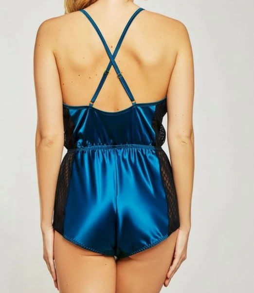 · Soft Satin with a sheer mesh cut-out in shorts
