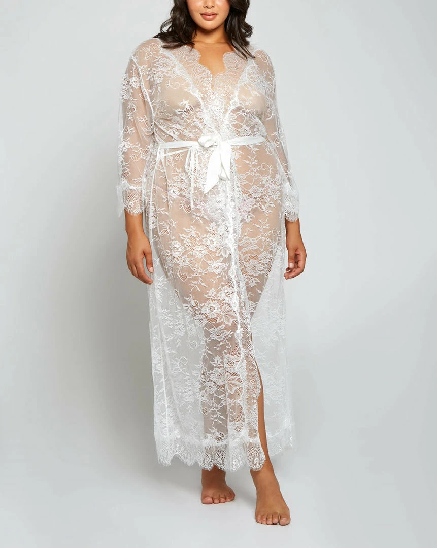 If you are looking for a sweet lace robe, look no further! This all-over lace robe with jacquard lace trim is what you have been looking for!
