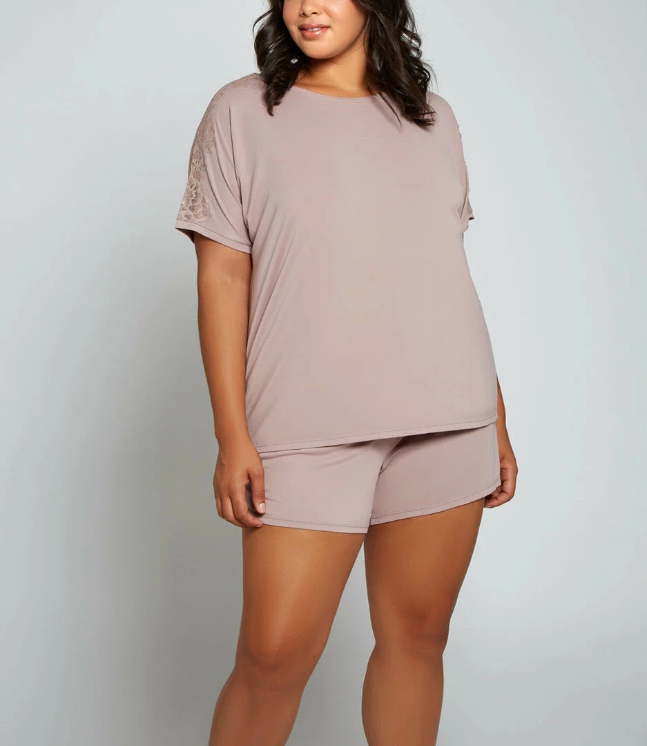 This SOFT PJ Set is made of viscose short sleeves pajamas with lace trim and drawstring shorts. You will want to lounge in this set ALL day long!