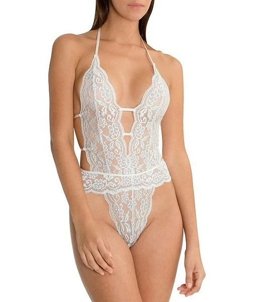 This teddy is a sexy piece under garment that features all over lace and a thong back.