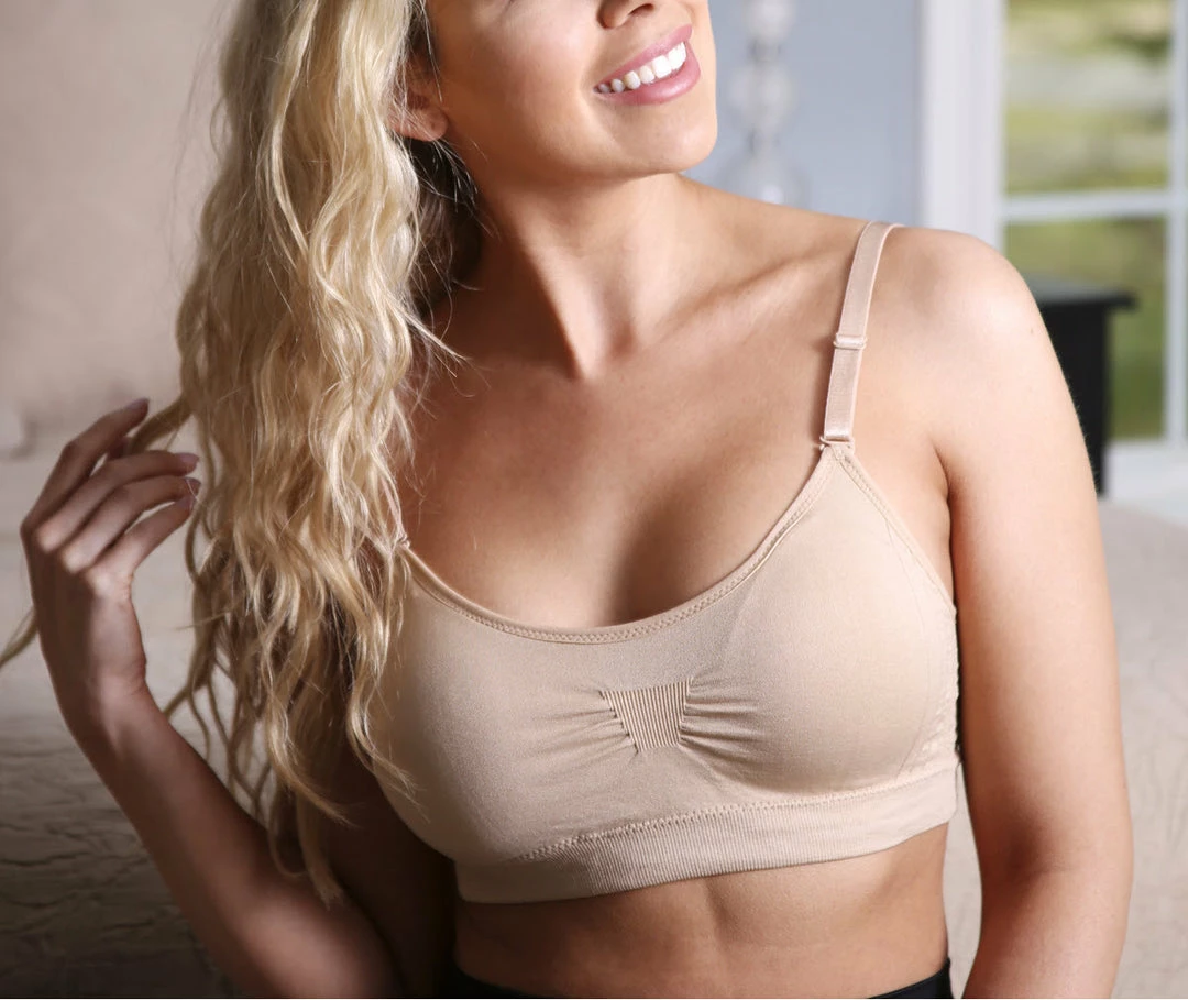 Your favorite seamless bra with a decorative, high quality, lace back panel. Soft & Stretchy, One size fits almost every body. Perfect for layering with sheer or backless tees.