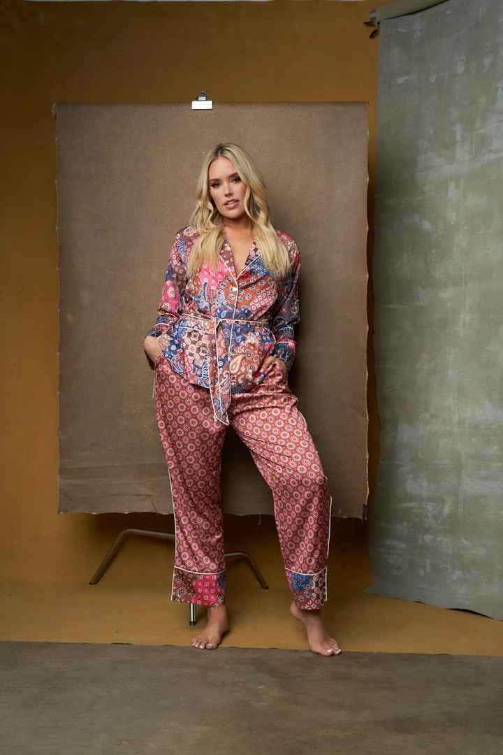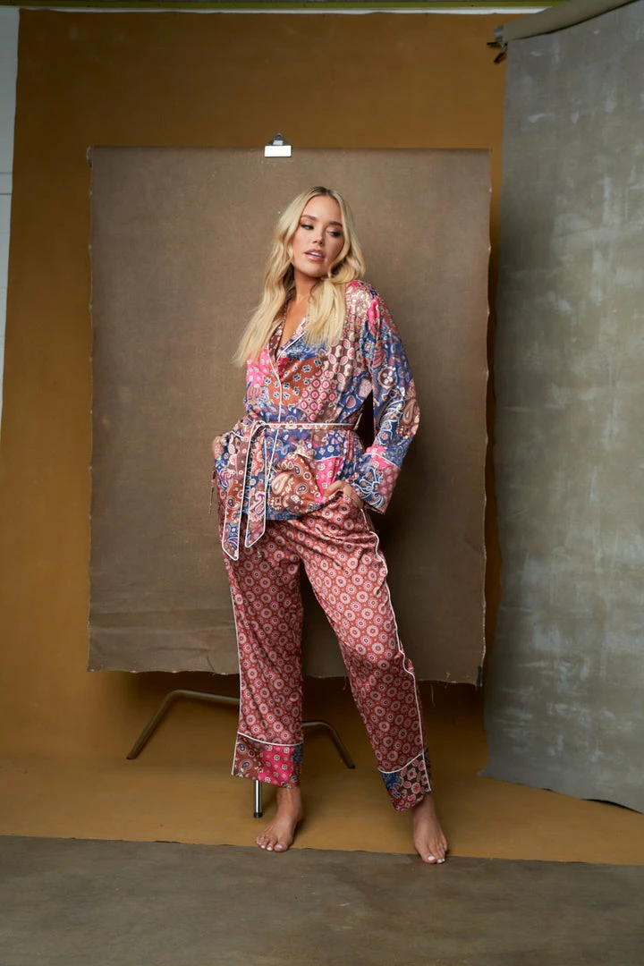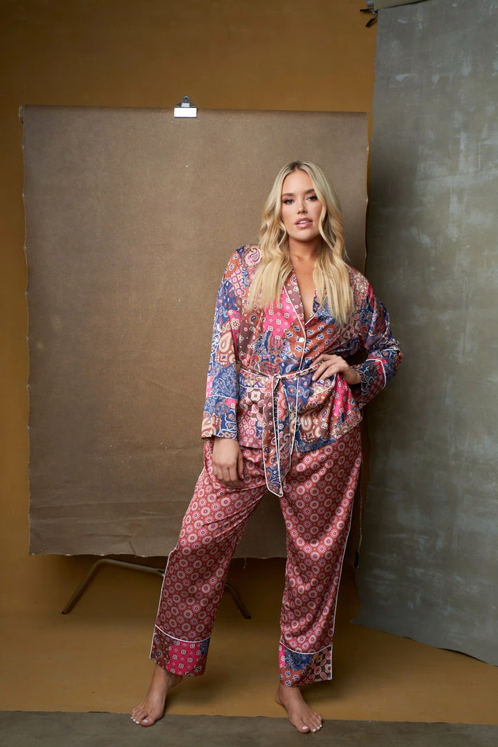 The Wrap PJ set. Made with the same tried and true pants from our classic set, but paired with a wrap jacket that can be worn in or out. Hello Versatility!