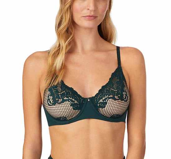 The Le Mystere Lace Allure Demi is a show stopping, unlined lace demi bra with a modern scooped neckline. The cups are set into a narrow frame with a subtle sparkle to catch anyone’s eye! This bra is finished with a charm detail at the center front, and pleated ribbon shoulder straps that are fully adjustable.