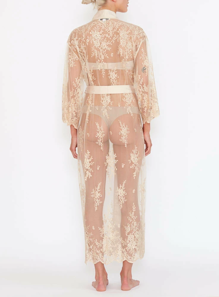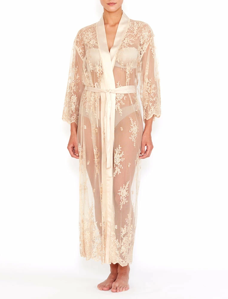 This robe can be great for any occasion whether it be your wedding day or get ready for a night out. The robe features an embroidered, all over soft lace.