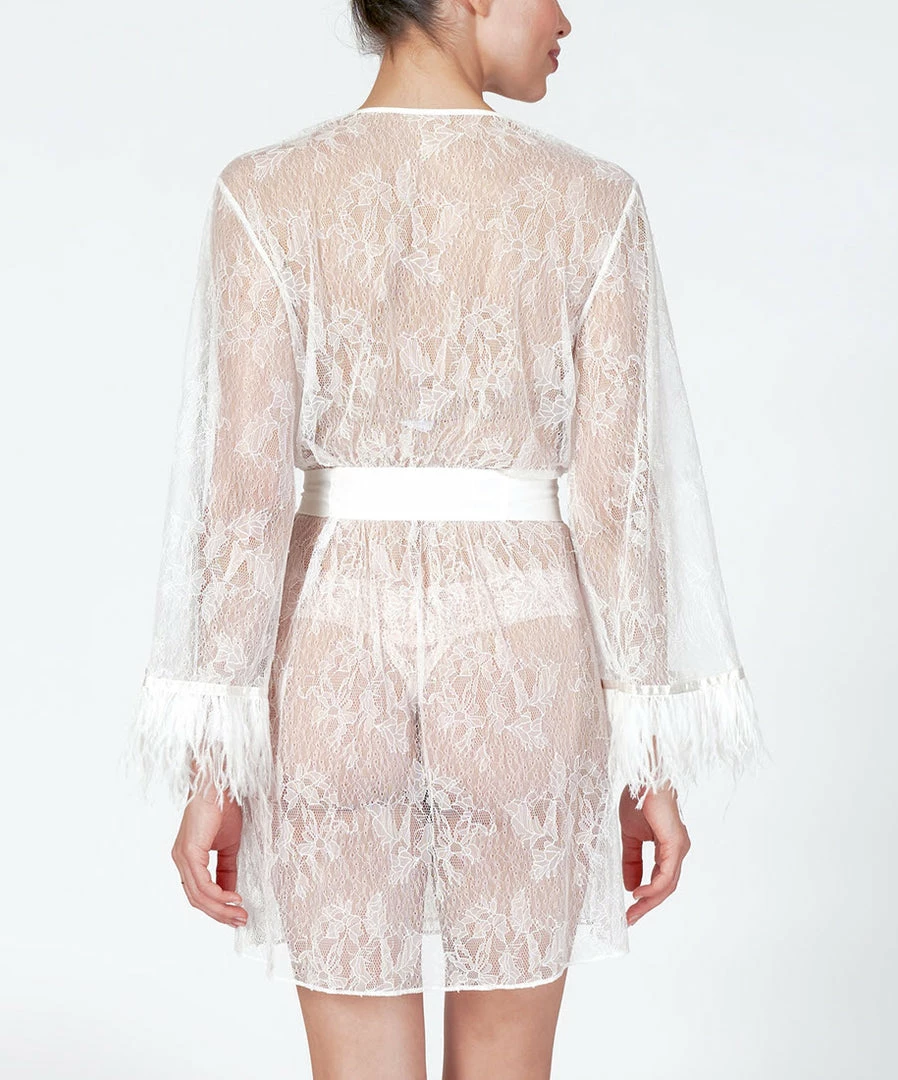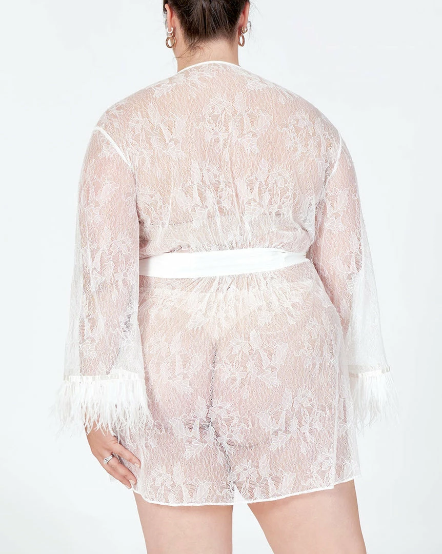 Every lace lover’s dream: The Jasmine Plus Cover Up. Intricately made with artistic lace details and turkey feathers to bring your bedroom look to its highest potential. Pair it with the Jasmine Chemise for the most elevated look.