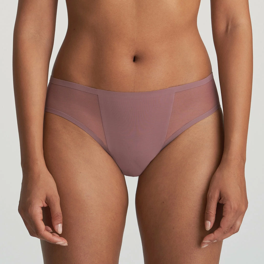 Rio Brief sits on the hip with a mesh side panel detail.