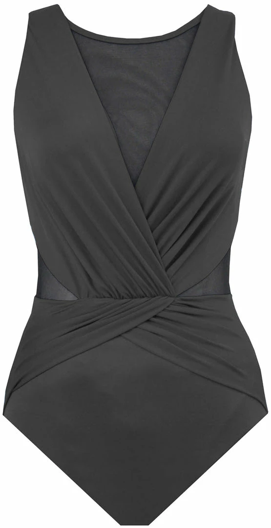 The stunningly solid Miraclesuit DD-Cup Solid Palma Swimsuiut, virtually whittles the waist and hips by way of its shirred, wrapped waistline. A higher-set neckline and mid-scoop back remain spirited yet subtle. Feel extraordinary and look unbelievably slim in a classic suit you simply cannot do without.