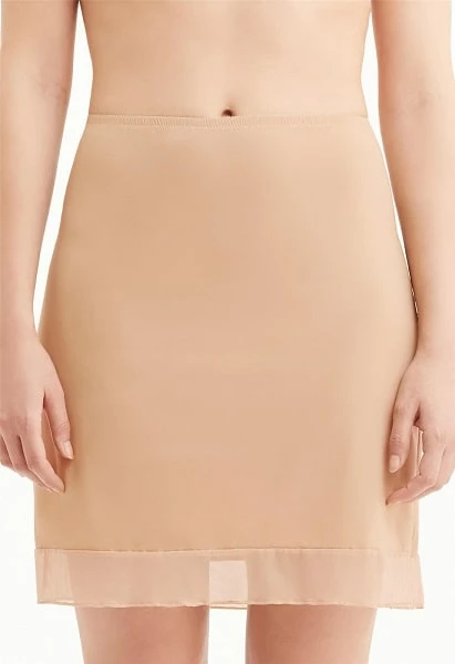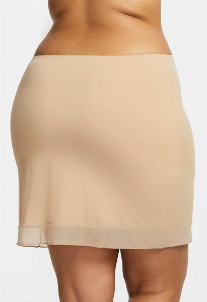 This half slip is mesh-trimmed for a modern look; this slip is a sheer skirt or dress’s best friend. The elastic waist provides comfort with ultra-soft, lightweight fabric which makes this slip feel barely there.