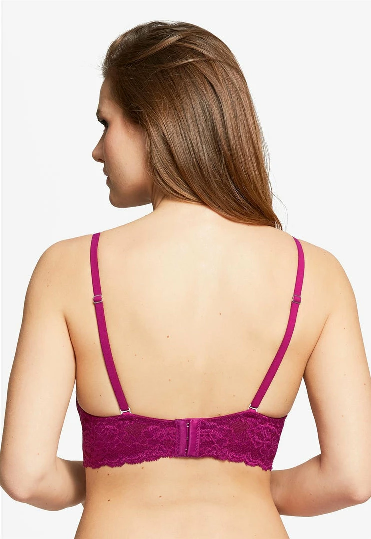 Finally, a bralette designed for fuller cup sizes! Sized like a bra with band and cup sizes, this lace bralette was designed to support women with fuller bust and smaller band sizes. Wire-free and made with our smooth floral lace, this bralette also features convertible straps that ca be styled classic or crisscross to complement your look for the day.