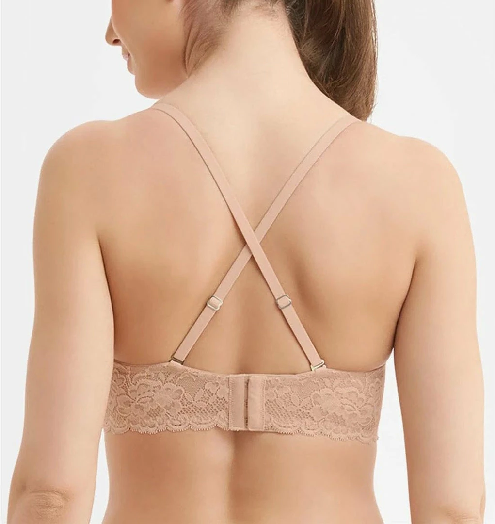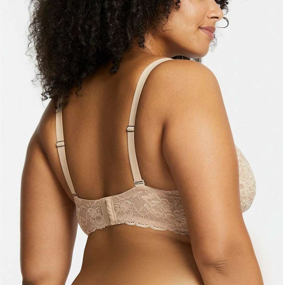 Finally, a bralette designed for fuller cup sizes! Sized like a bra with band and cup sizes, this lace bralette was designed to support women with fuller bust and smaller band sizes. Wire-free and made with our smooth floral lace, this bralette also features convertible straps that ca be styled classic or crisscross to complement your look for the day.